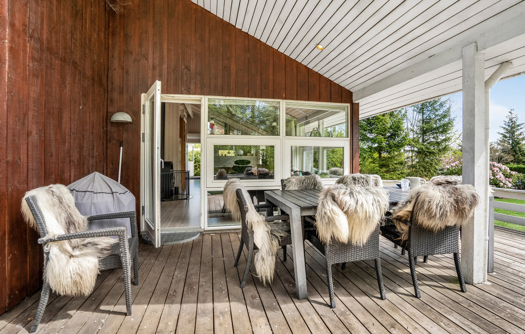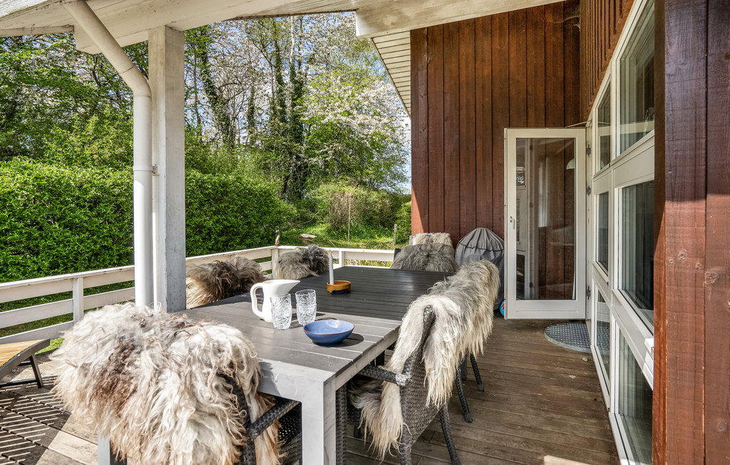 Dieses schöne Ferienhaus ist im mondänen Gebiet am Strib Strand hoch gelegen. Das Haus hat mehrere schöne Terrassengebiete, von denen eins überdacht ist. Es ist somit immer möglich, eine windstille Ecke zu finden. Das Ferienhaus hat ein schönes Wohnzimmer mit Scheitofen. Neben dem Wohnzimmer liegt die offene gut ausgestattete Küche. Das schöne Badezimmer des Hauses hat sowohl Whirlpool als auch Sauna, so dass der Körper verwöhnt werden kann. Überall im Ferienhaus und auf der Terrasse können Sie bequem den schnellen Internetanschluss benützen. Das Ferienhaus steht nur wenige Minuten zu Fuss vom familienfreundlichen Strand. Eine Treppe führt zum Strand hinunter.